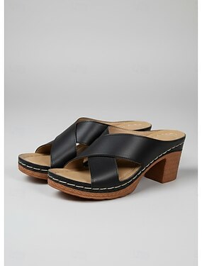sandálias femininas de salto grosso e tiras cruzadas – sandálias mule vintage de verão para festas no jardim, férias e eventos diurnos