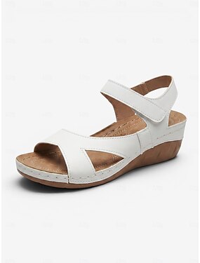 sandálias peep-toe recortadas em creme para mulheres – design respirável com corte a laser, casual chique para caminhadas na primavera, viagens e conforto diário