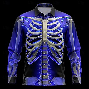 Camisa Masculina de Fantasia de Esqueleto Neon Glow Camisa de Botão Manga Longa Estilo Gótico Punk Escuro Externo Férias Verão Primavera Gola Reversa Impressão 3D Camisas com Gola Preta Roxa Dourada