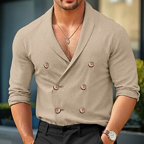 Homens Camisa Social camisa de linho Côr Sólida Formal Traje de festa para noite Branco Azul Marinha cáqui Manga Longa Xale Primavera & Outono Estações Cruzadas Roupa Botões