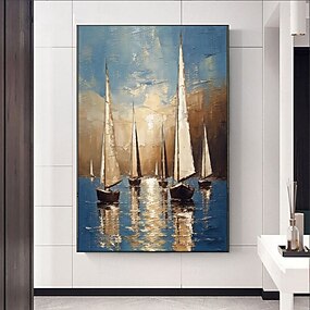 Pintura artesanal de veleiro, paisagem marinha abstrata, pintura a óleo acrílica texturizada, arte de parede com veleiros texturizados, arte abstrata do oceano.