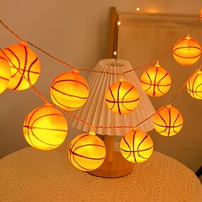 Cordão de luzes LED em formato de bola de basquete, 1,5 m, 10 LEDs, ideal para atividades temáticas, festas e decoração de quartos.
