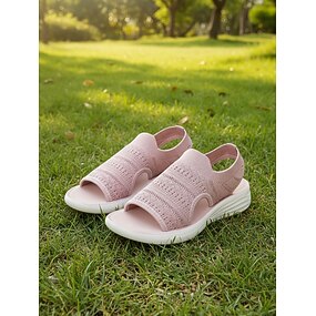 Sandálias femininas rosa de tricô com sola leve - calçado confortável de calçar para o verão, ideal para praia e ocasiões casuais.