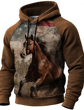 Homens Cavalo Moletom 3D Caça Manga Longa Com Capuz Ao ar livre Esportes Preto Vinho Marron Mangas Raglã Outono Inverno Designer S M L XL 2XL 3XL