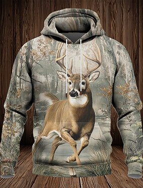 Homens camuflagem Veado Moletons Moda Diário vaqueiro ocidental Manga Longa Com Capuz Férias Caça Marron Verde Cinzento Com Cordão Zíper Outono Inverno Designer S M L XL XXL XXXL