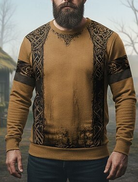 Homens 3D Moletom Étnico Vintage retrô Manga Longa Gola Redonda Ao ar livre Streetwear Preto Com Cordão Outono Inverno Designer S M L XL XXL XXXL