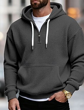 Homens Moletom Moletons Waffle Quarter Zipper Hoodie Azul Marinha Cinzento Claro Cinzento Escuro Azul Claro Com Capuz Tecido bolso canguru Textura Desportos e Ar livre Casual Diário não imprimível