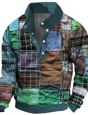Homens Xadrez / listrado / divisa Moletom Moletons Manga Longa Moletom Henley Impressão gráfica Feriado Para Noite Festival Fivela Imprimir Outono Inverno