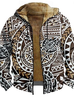 Homens Gráfico Moletom Jaqueta Moda Étnico Casual Manga Longa Com Capuz Ao ar livre Esportes Para Noite Castanho Claro Branco Laranja Marron Bolsos Imprimir Tosão Inverno Designer S M L XL 2XL 3XL