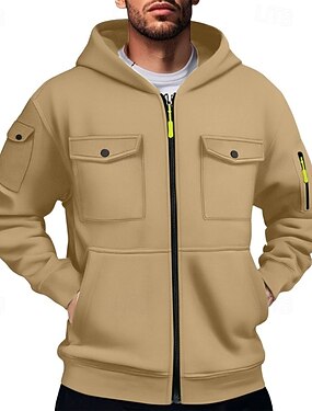 Homens Moletom Full Zip Hoodie Moletom Tático Preto Branco Verde Tropa Vermelho Vinho Com Capuz Tecido Zíper Bolsos Desportos e Ar livre Casual Diário Roupa de rua Legal Roupa de Esporte Inverno
