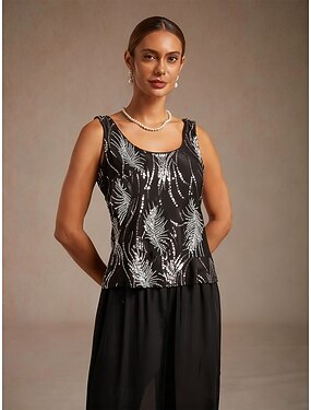 Mulheres Blusa Tops de lantejoulas Camisola Regata Paetês Purpurina Tecido Elegante Metálico à moda Sem Manga Gola Redonda Tops regulares Diário Feriado Para Noite Preto Branco Vinho Verão Primavera