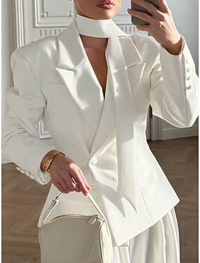 Mulheres Blazer Confortável Patchwork Botões Moda Moderno Casual Côr Sólida Trabalho Rua Roupa Diária Para Noite Padrão Aberto para a Lateral Normal Manga Longa agasalhos Preto Branco Outono Inverno