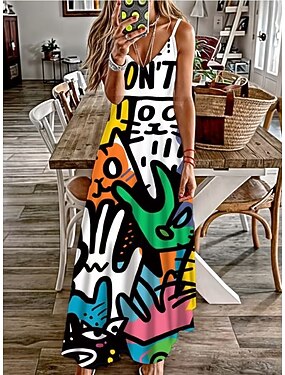 Mulheres Vestido Longo Vestidos Para o Verão Vestido A Line Vestido de decote Férias Casual Boho Praia Normal Gráfico Abstrato Sem Manga Decote V Azul Preto Rosa Vermelho Verão Primavera