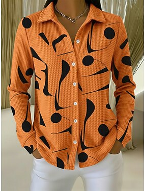 Mulheres Camisa Waffle Blusa Botões Imprimir Geométrica Férias Diário Casual Manga Longa Colarinho de Camisa Tops regulares Diário Ao ar livre Feriado Vinho Laranja Bege Verão Primavera Outono