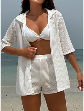 Mulheres Roupa de Banho Biquíni Três Peças Tanga roupa de banho Delgado Frente Única Férias Roupa de Praia Côr Sólida Decote V Sem Manga Fatos de banho