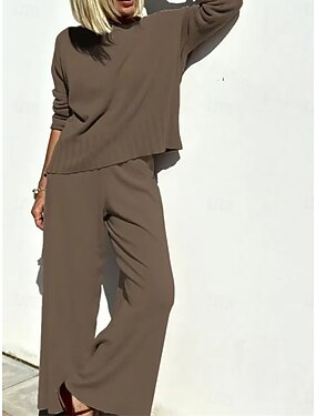 Mulheres Conjuntos de calças Bolero Top Manga Longa Gola Redonda Tecido Patchwork Moda Roupa de rua Casual Diário Ao ar livre Vinho Vermelho Azul Marinho Escuro Primavera Normal