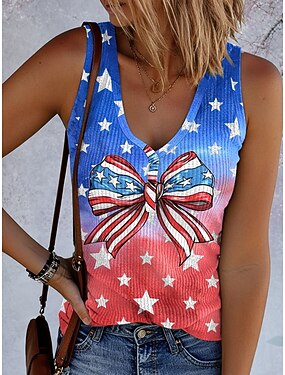 Dia da Independência Americana Mulheres Malha Íntima Imprimir Gráfico Bandeira Vintage Tropical à moda Sem Manga Decote V Tops regulares Diário Azul Vermelho Azul Marinha Bege Verão Primavera