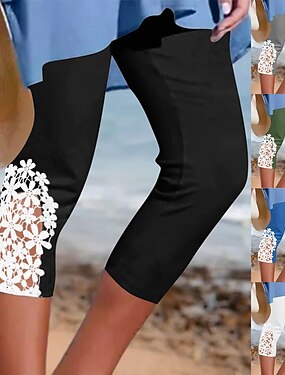 Mulheres Leggings Férias Moda Roupa de rua Comprimento da panturrilha Cintura Alta Tecido Renda Cintura elástica Confortável Macio Respirável Com Stretch Rua Casual Feriado Azul Verde Militar Preto