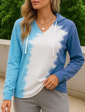 Mulheres Tintura Tie Dye Moletom casual Pulôver com capuz Outono Com Cordão Manga Longa Roupa Esportiva Decote V Da Moda Exterior Viagem Esportivo Azul Rosa Laranja Roupa de esporte Roupas Esportivas
