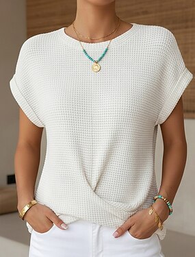 Mulheres Camiseta Malha Íntima T-shirt Tecido Boêmia Moda Clássico Sem Manga Gola Redonda Tops regulares Diário Para Noite Final de semana Azul Preto Branco Rosa Cáqui Verão Primavera