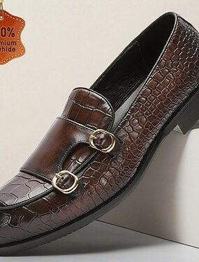 mocassins masculinos com tira dupla de monge e padrão de crocodilo marrom – sapatos sociais de couro slip-on para negócios, festas e ocasiões semiformais