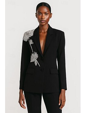 Mulheres Blazer Casaco esportivo Formal Convidado do casamento Strass Elegante Manga Longa Lapelas entalhadas Não Trespassado