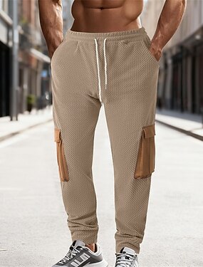 Homens Calças Cargo Corredores Calças Calças Táticas Calças de trabalho Com Cordão Bolso multi Bolso com aba Côr Sólida A Prova de Vento Conforto Comprimento total Diário Ao ar livre Feriado Roupa de