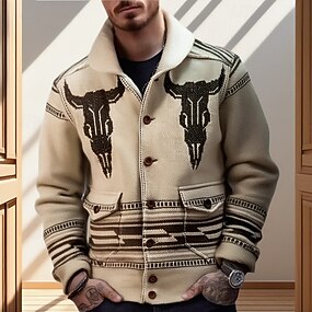 Homens Jaqueta casual Casaco de pele falsa Férias Diário Térmico / Quente Felpudo Outono Inverno Tecido Moda Roupa de rua Lapela Padrão Branco Amarelo Camelo Cinzento Casaco
