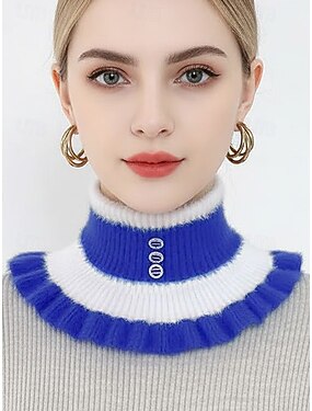 Gola felpuda de Natal feminina em tricô – mistura de lã macia e aconchegante com design de babados, disponível em várias cores, perfeita para o inverno e para as festas de fim de ano.