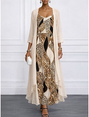 Mulheres conjunto de vestido Vestido Longo Vestido de turno Vestido de verão Casual Gráfico Geométrica Multi Camadas Imprimir Vestido Longo Manga 3/4 Gola Redonda Diário Laranja Primavera Outono