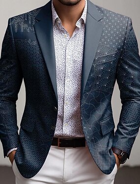 Homens Em relevo Padrão de alívio Manga Longa Aberto para a Lateral Vintage Negócio Trabalho Vestir para trabalhar Para Noite Botões Imprimir Bolso multi