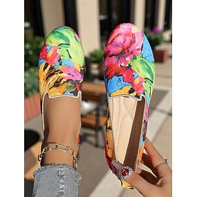 Mocassim Floral Colorido Feminino em Linho – Loafers Casuais Leves de Bico Redondo Sapatos Confortáveis e Artísticos para Caminhadas Viagens e Uso Diário