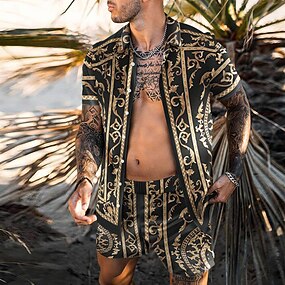 Homens Camisa de linho camisa de verão Roupa de Praia camisa de botão Tecido Férias Curise Preto Branco Verde Claro Rosa Manga Curta Aberto para a Lateral Verão Roupa