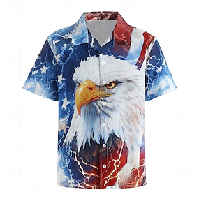 Homens 4 de julho - 250º aniversário dos EUA Águia Bandeira dos EUA Camisa Social camisa de botão Manga Curta Vintage retrô Ao ar livre Feriado Verão Primavera Aberto para a Lateral Impressão 3D