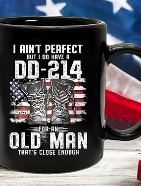 Caneca de presente para veteranos com o distintivo DD-214 - 'Não sou perfeito, mas tenho um DD-214, o que já é quase a mesma coisa' - Caneca de café para veteranos orgulhosos com tema patriótico