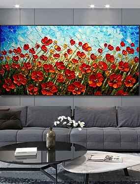 Pintura a óleo artesanal arte da parede da lona decoração abstrata flor vermelha faca artesanal pintura pintura para decoração de casa rolada pintura não esticada sem moldura