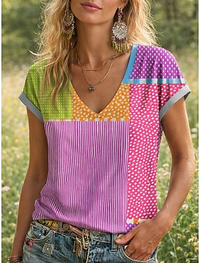 Blusa Feminina 100% Algodão Estampa de Botão Fim de Semana Streetwear Básica Casual Semelhante a Linho Manga Curta Gola Redonda Branca Verão Primavera