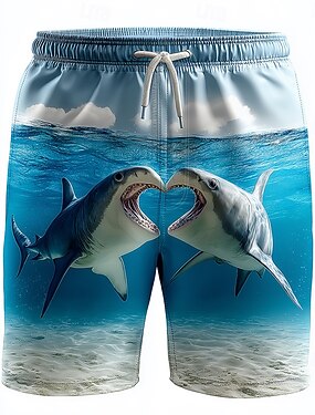 Homens Tubarão Forma de Coração Animais Calção Justo de Natação Fatos de banho Calções de banho Bermuda de Surf Cintura Média Havaiana Engraçado férias na praia Bolsos laterais Forro de malha Cintura