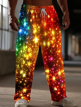 Natal Homens Purpurina Brilhante Luz de Natal Corredor Calças Calça casual Cintura Média Cintura elástica com cordão Casual Ao ar livre Feriado Calças de perna reta Primavera Outono Impressão 3D