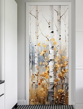Banner de floresta de bétulas nórdicas, paisagem natural, decoração de parede com árvores brancas e folhas douradas, ideal para porta, entrada, quarto e casa.