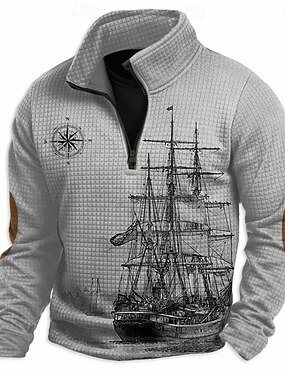 Homens Navio Moletom Waffle Moletom Moda Vintage retrô Colarinho Chinês Ao ar livre Casa Presente Azul Claro Verde Claro cáqui Cinzento Zip Up Outono Inverno Designer S M L XL XXL XXXL