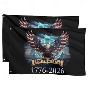 Conjunto de 2 bandeiras de jardim comemorativas do 250º aniversário dos EUA (1776-2026), bandeira patriótica americana para decoração de quintal, gramado, varanda ou Dia da Independência.