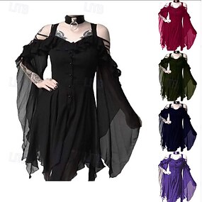 Retro Vintage Punk e gótico Medieval Vestidos Baile de Máscara Bruxa Fantasia Mulheres Noite de Walpurgis Dia Das Bruxas Carnaval Baile de Máscaras dia das Bruxas Festa / Eventos Adulto Vestido