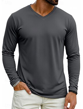 Homens Camiseta T-shirt Manga Longa Decote V Primavera Inverno Primavera & Outono Côr Sólida Tecido Roupa de Malha Diário Roupa de Esporte Puro Casual Diário Ao ar livre Preto Branco Cinzento Escuro