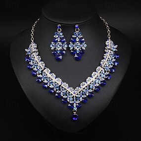 Conjunto de Jóias 4pçs Strass Liga Brincos Colares Braceletes Mulheres Elegante Vintage Moda Geométrico Forma Geométrica Conjunto de jóias Para Casamento Festa Aniversário