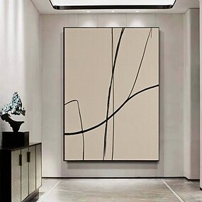 Pintura abstrata pintada à mão em tons de bege e marrom, estilo minimalista, para decoração de parede. Arte de parede minimalista abstrata em bege e preto, para galeria de arte.