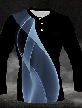 Homens Gráfico Retalhos Camisa Henley Manga Longa Impressão 3D Moda Diário Casual Casual Feriado Para Noite Primavera & Outono Azul Azul Claro Azul Royal Azul Escuro Henley Camiseta Henley