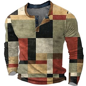 Homens Gráfico Xadrez Bloco de cor Camisa Henley Camiseta Waffle Manga Longa Impressão 3D Moda Designer Casual Esportes Feriado Festival Primavera & Outono Vermelho Roxo Marron Verde Henley Camiseta