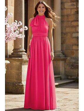 Linha A Longo Vestido formal Vestido de noite Vestidos de baile Elegante Sem Manga Halter pescoço Formal Convidado do casamento Chiffon com Pregas