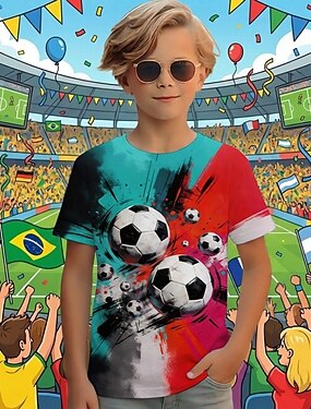 Para Meninos 3D Gráfico Futebol Americano Camisetas de futebol Camisa Camiseta Manga Curta Impressão 3D Verão Primavera Esportes Moda Roupa de rua Infantil 4-12 anos Gola Redonda Casual Diário Ao ar